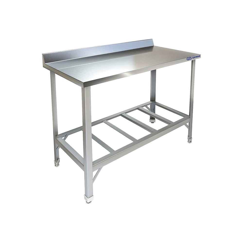Производственный стол KAYMAN СП-255/1206 используется на предприятиях общественного питания и торговли для раскатки теста и обработки ингредиентов для приготовления блюд, а также как дополнительное место для установки и хранения кухонных приборов, инвентаря и сухих продуктов. Модель оснащена полкой-решеткой и плоским бортом. Каркас изготовлен из оцинкованного уголка толщиной 1,5 мм, решетка из оцинковки, толщиной 0,8 мм, столешница — из нержавеющей стали AISI 430, толщиной 0,8 мм, усиление ЛДСП 16 мм.