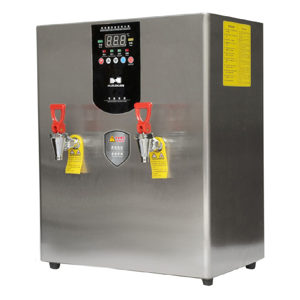 Кипятильник Hurakan HKN-HVZ180D используется на предприятиях общественного питания и торговли для нагрева большого количества воды. Модель оснащена электронной панелью управления, индикатором нагрева, автоматическим контролем уровня и температуры воды, защитой от перегрева и 2 сливными кранами. Корпус выполнен из нержавеющей стали.